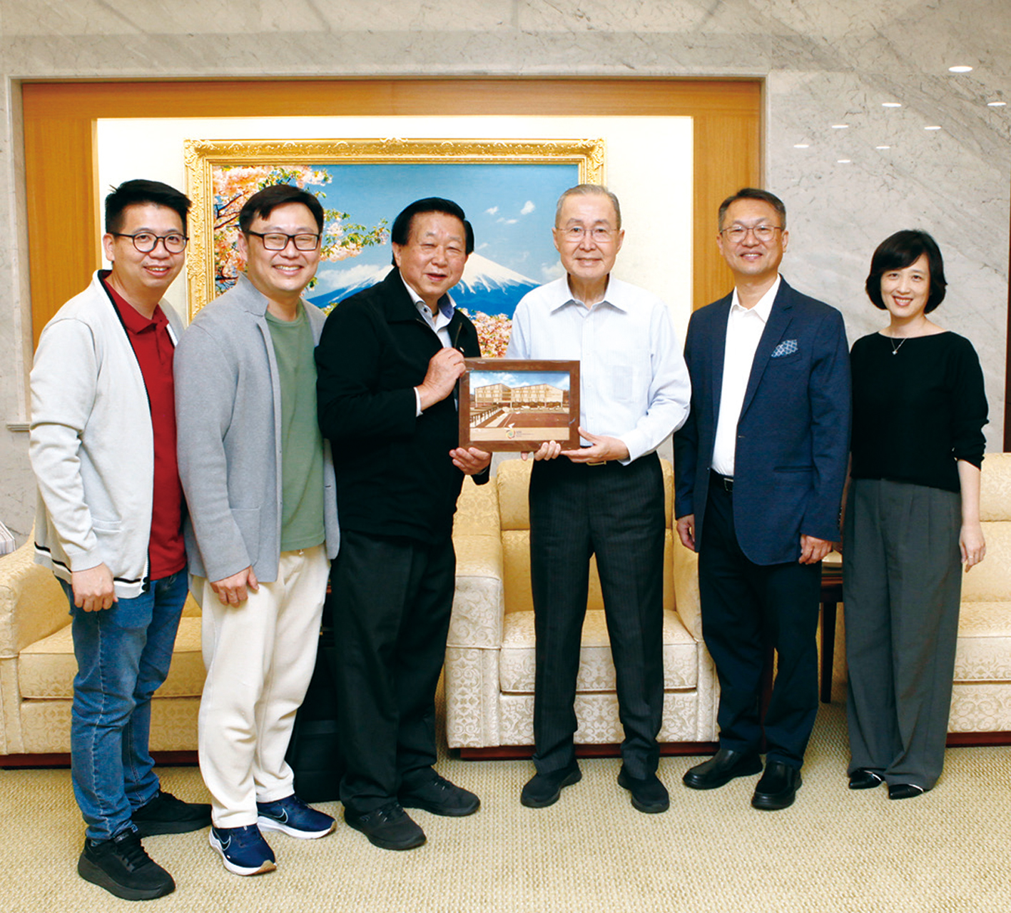 在先參觀「宇宙能量 蕭勤九十紀念展」及至善的各項設施之後,郭董事長一見到林理事長就對台灣SGI以藝術深耕社區、提升民眾文化涵養的成果,表達欽佩之意。