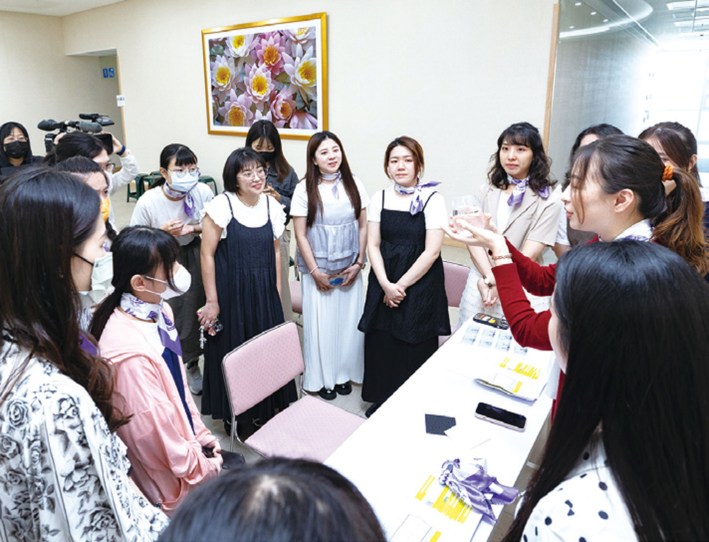 活動中,透過「芙蓉專題」影片來說明芙蓉組使命的意義,而「勤務闖關」單元,則由學姊帶領新生學習端遞茶水等工作的禮儀。至於,激勵人心的「體驗分享」單元,廖秀如、謝旻臻分別於桃園、高雄兩地談到,透過在芙蓉組砥礪信心及出任勤務的磨練,不僅讓自己變得細心、生命比以前有韌性之外,更將這樣的特質運用在職場及家庭上,創造出許多勝利的實證。她們的感人體驗告訴大家,祇要堅持信心、貫徹使命,每個人都可以綻放屬於自己的勝利之花。