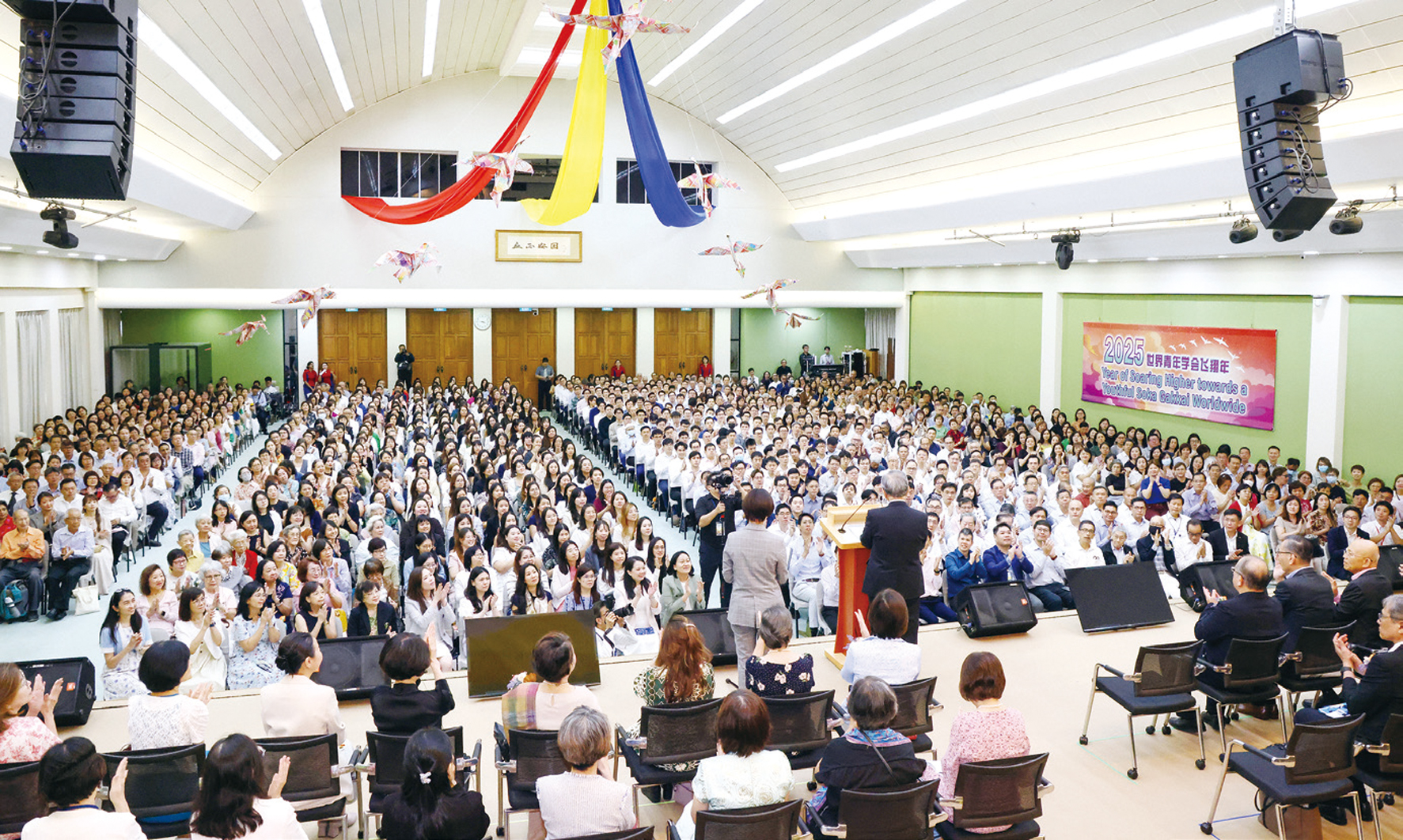 會中,SGS女子部長唐雪柔進行活動報告時,介紹該國會員透過一對一對話,擴大成長的成果,並談及她本人以信心為根本挑戰學業,取得南洋理工大學碩士學位的奮戰體驗。