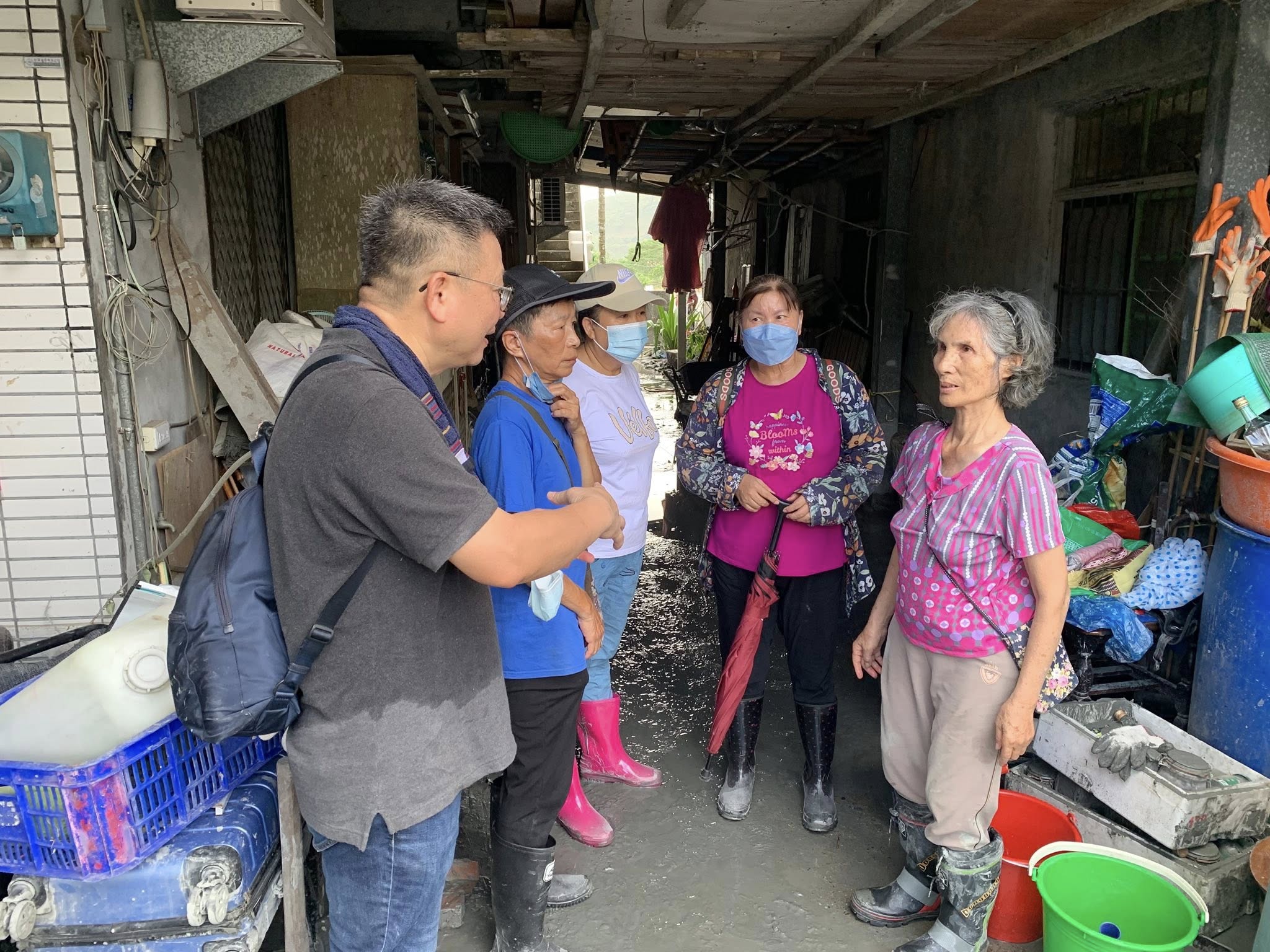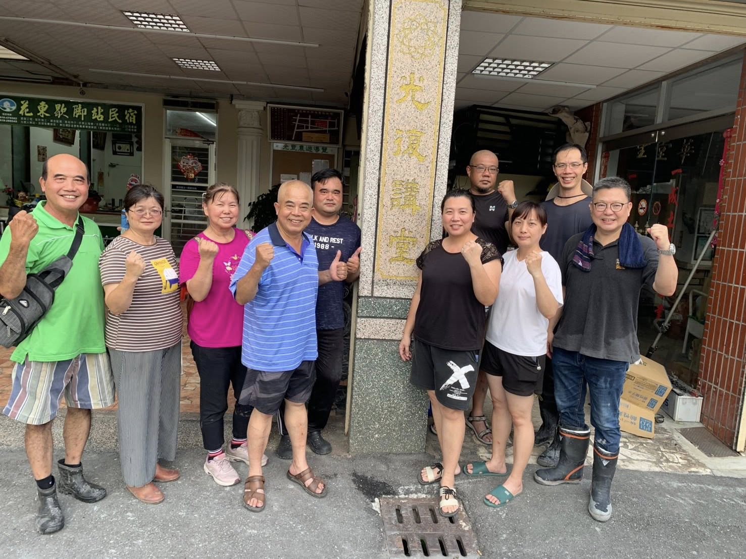 同日,花蓮區區長吳健誠帶領區內幹部,前往陳紅桃、馬鈴珠、陳節妹、黃瑞園、李玉雲、蕭秉榮等會員的住宅及徐淑芬的工廠等地清除汙泥、關懷會員。