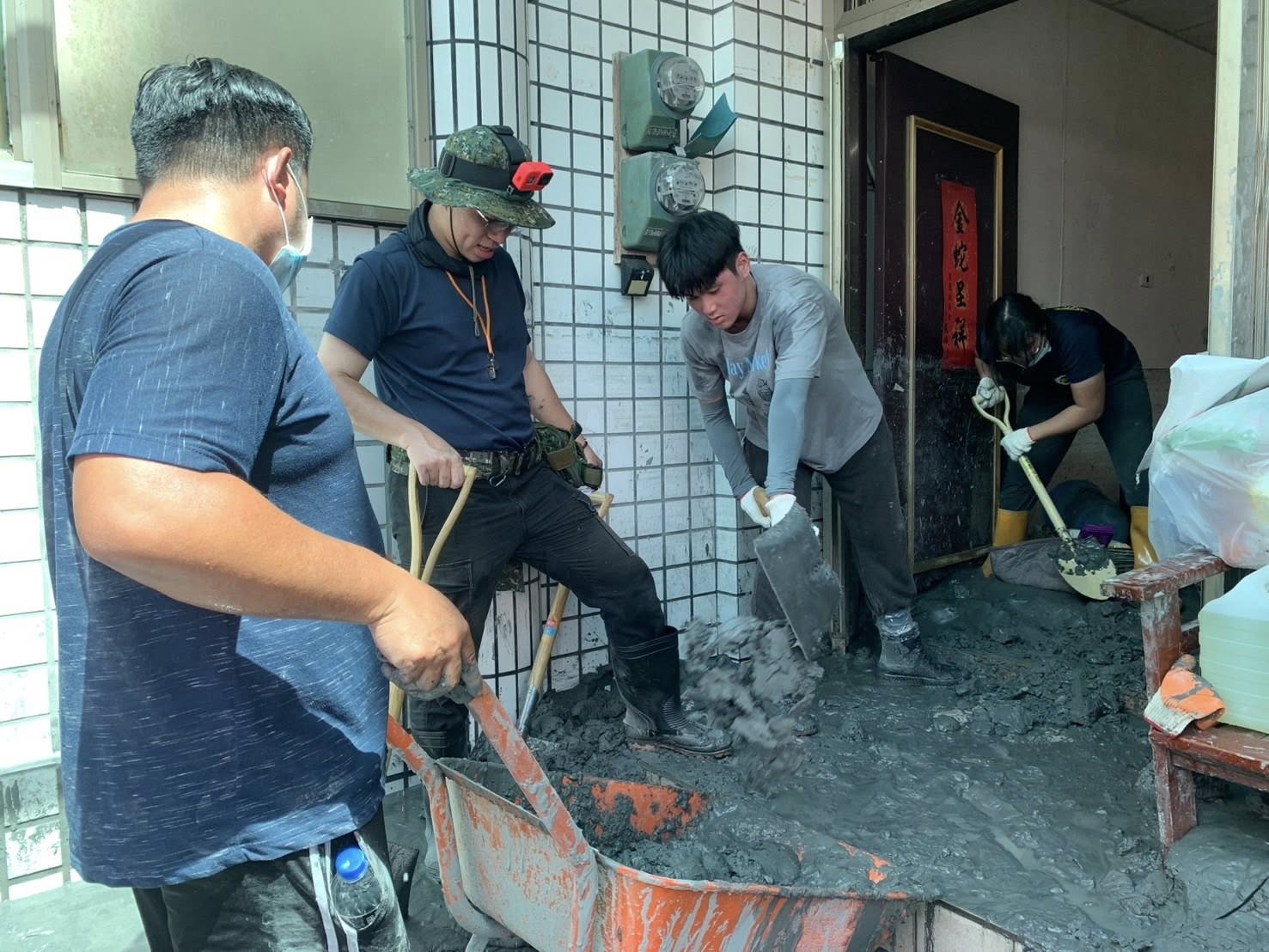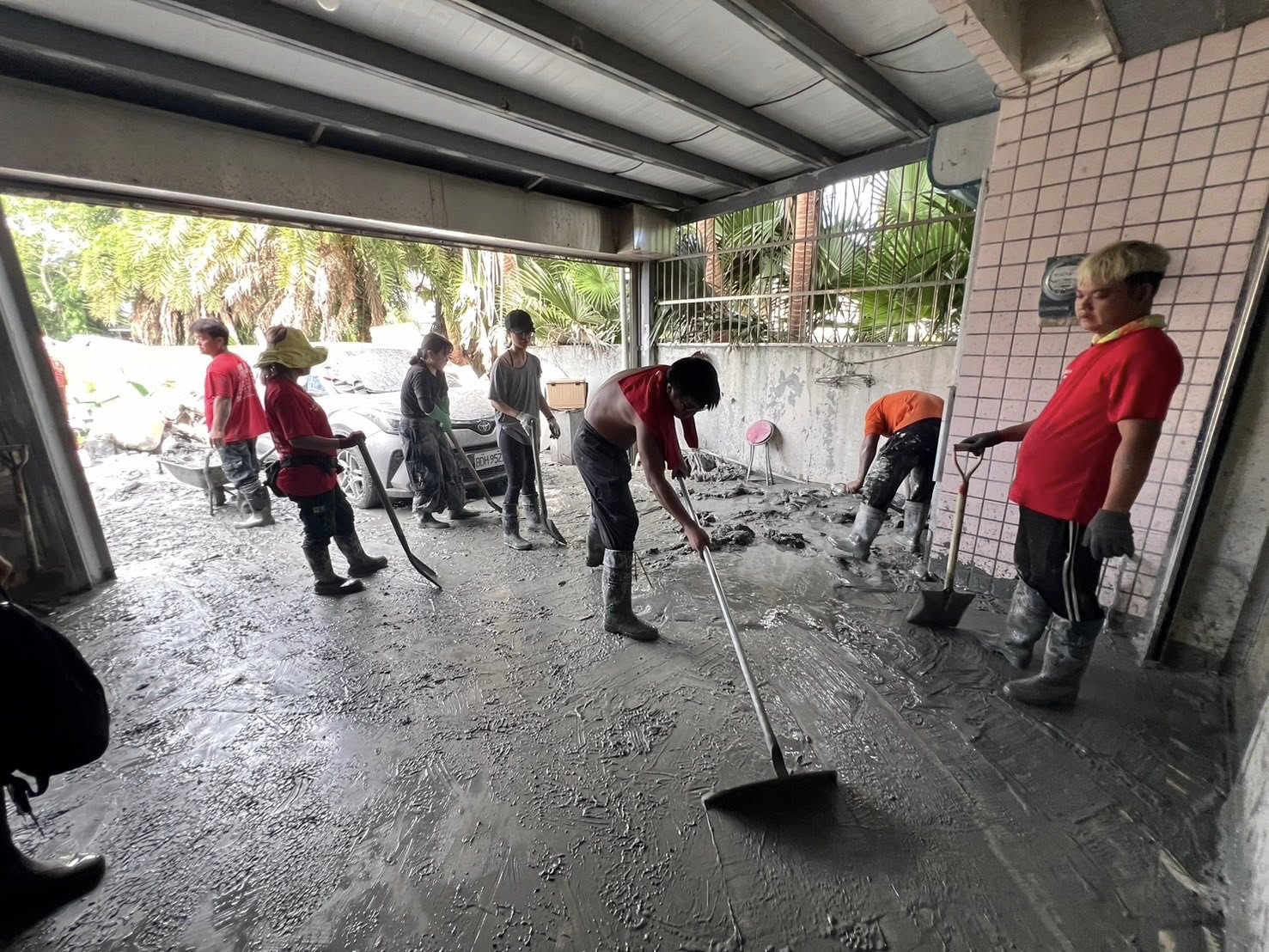 幹部們除了調度山貓、怪手等機具來清除汙泥之外,後續也將協助受災戶架設簡易防護設施,預防再度淹水。創價的關懷慰問與救災行動將持續進行。