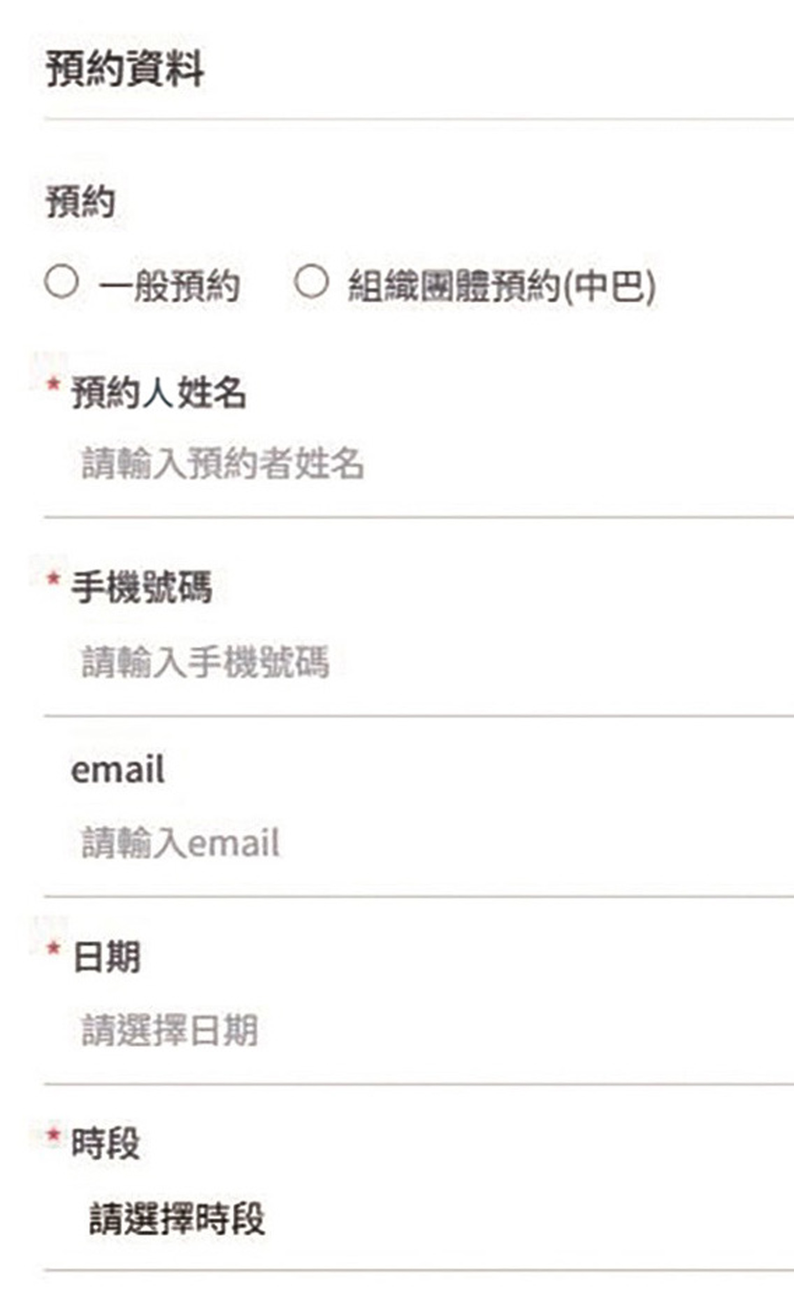 2.選擇【一般預約】或【組織團體預約(中巴)】。