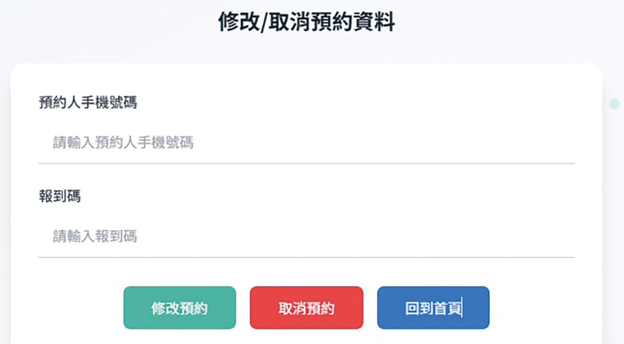 2.預約系統提供兩大功能「線上預約」及「修改/取消預約」。