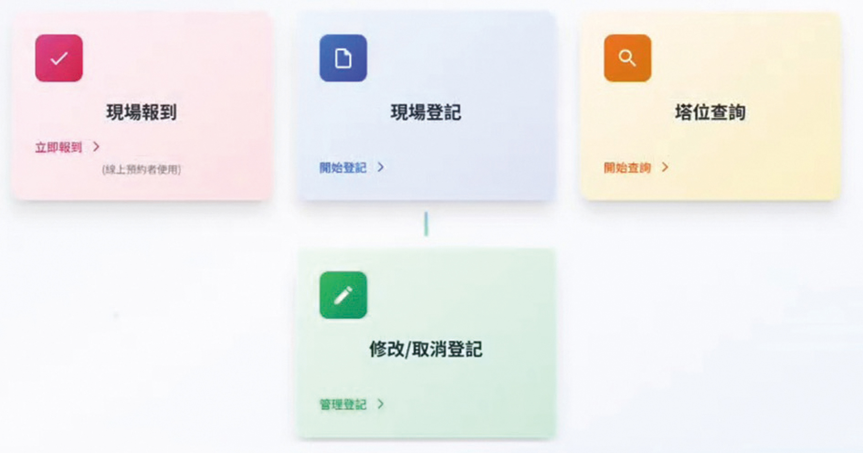 5.此外,於報到機器點選【塔位查詢】,可輸入亡者姓名、報到碼、塔位編號,進行塔位查詢。