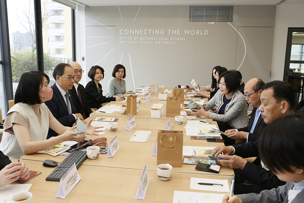 日本創價大學理事長秋谷芳英、國際部部長川上喜彥及創價學會國際涉外局第二部部長水嶋肇等一行人,2月24日上午,在共同執行長林澤、吳青蓉等陪同下,前往台灣大學訪問,受到副校長丁詩同、國際合作專員吳盈萱等的熱情接待。