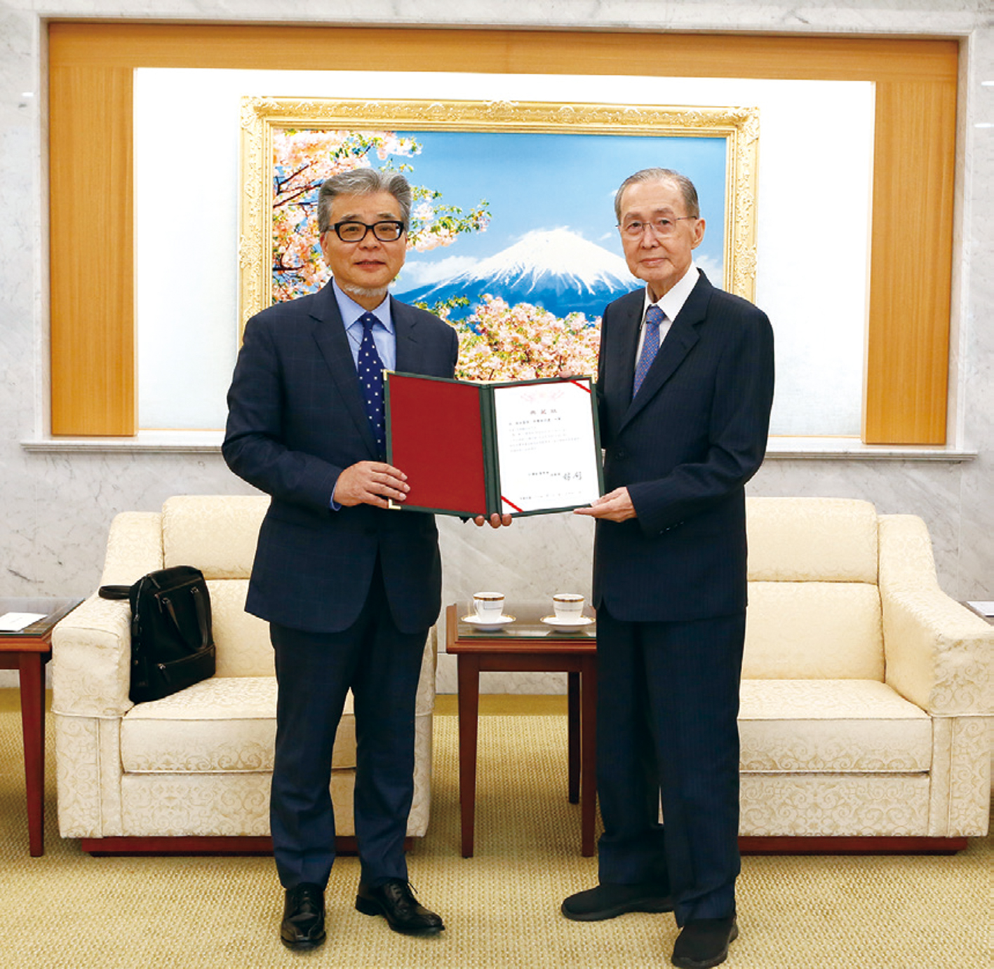 3月27日上午,壯年部岡田貴雅專程前往至善文化會館,將其所珍藏之前輩畫家楊三郎畫作〈玉山遠眺〉及廖德政作品〈艷夏〉捐贈給創價,由林釗理事長代表接受。