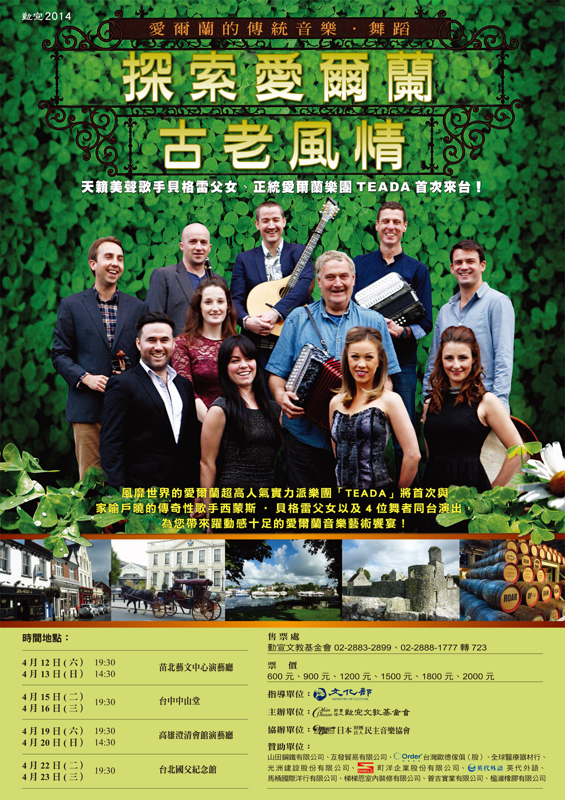 「演奏」、「歌曲」及「舞蹈」是愛爾蘭傳統音樂的靈魂,此次勤宣公演將帶領觀眾一起探索「愛爾蘭古老的風情」。