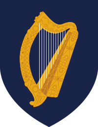 愛爾蘭國徽是一面藍色的盾徽,中間繪有一面金色框、銀弦的愛爾蘭豎琴。「豎琴」是愛爾蘭重要的民族樂器。愛爾蘭人對豎琴圖案最為崇拜和喜愛。