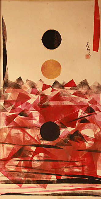 宇宙間 1969油彩、塑膠片、玻璃版72×27.7cm
