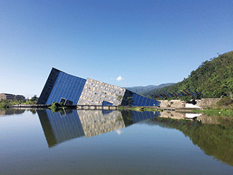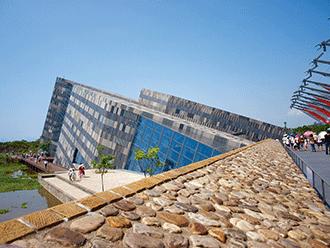 這座於民國八十九年定於烏石港區的博物館,經歷了十年的籌備與規畫,終在民國九十九年建成,由台灣執建築設計牛耳的大元建築師事務所(姚仁喜建築師)設計,建築師詩意的將韋瓦第小提琴協奏曲「四季」的旋律,作為外牆材料變化的依據,將建築的外觀變成了樂譜,也像是從空中俯視蘭陽平原時,阡阡陌陌的稻田風景,濃濃的人文氣息,在宜蘭這塊土地上,留下一個美麗的樂章。 而走進內部, 玻璃空橋、石材牆面與錯綜的桁架間形成了特別的空間體驗,參觀民眾則由手扶梯沿著山壁向上,順著建築造型從「山」走下平原,了解宜蘭百年來的人文地貌,是極具巧思的展覽序列。