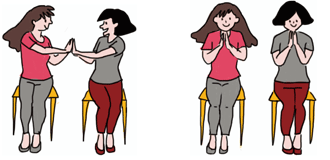 ①轉身與旁邊夥伴兩掌相對,互推一下。