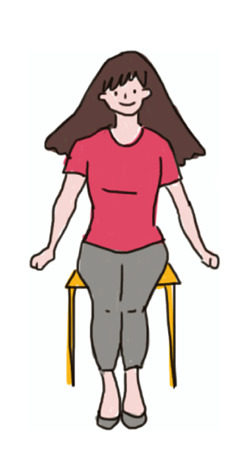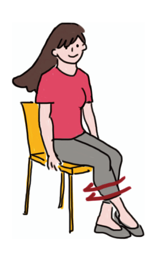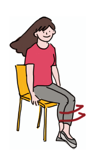 坐在椅子上,做膝關節的訓練。在工作或做家事的空檔,一個人也可以運動。