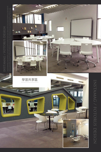 一樓學習共享空間,包含電腦檢索、語言 學習服務、討論室及開放討論空間等。 |