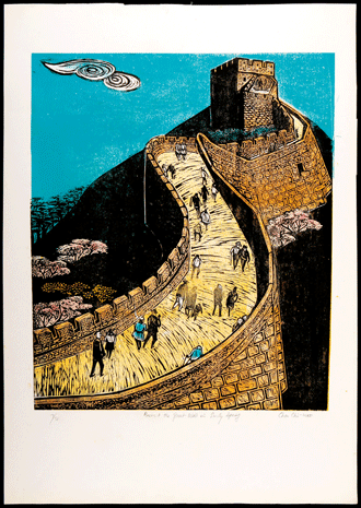 1987年,台灣政治解嚴,政府開放大陸探親,兩岸開始往來,陳其茂也走訪神州大陸,前後有1 1 次大陸之行, 到過長江三峽、黃山、桂林,也走過貴陽、雲南、昆明、大理、西雙版納等地,由於這地理人文, 醞釀陳其茂創作「還鄉記」一系列作品,北方雪景、黃山的山崖與古松、宏偉的長城、西南少數民族不同的服飾等等,一一出現在版畫中。此外,亦有「阿拉伯」系列版畫創作。