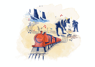記載蘭陽地區為了繁榮地方,鑿通鐵路讓火車「咻咻砰砰」地穿過山洞,搭配岩縫中不斷「滴滴咚咚」滴落下來的水聲;也有人說是描述礦工賭博時,丟銅錢「哐啷哐啷」擲地有聲的諧和音律。這首民謠使用簡單重覆的台語歌詞,加入其他語言增添趣味性與變化性,例如「阿妹」是客家話、「伊都」與「哎唷」是語助詞,製造了強烈的韻律感與節奏感。筆者非常推薦此曲的「無伴奏人聲合唱」版本( 又稱A Cappella),由師大音樂系教授錢善華改編,深受國內及國外合唱團喜愛,大家可以在曲中聽見以「人聲」來摹仿蒸汽火車的鳴笛聲與排氣聲、火車由出站到入站時齒輪滾動聲的漸快與漸慢,是一場活靈活現的聽覺饗宴喔!