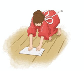她跟湯婆婆簽了工作合約書,被簡稱為千。日本從平安時代開始,娼妓們就有使用匿稱(源氏名)的習慣,延續到之後的性工作者,都採用這種不透漏本名的方式,而通常這些小名也會成為他們在生活中的名字。某種程度意味著真名與小名,區隔著真實的生活與社會中所扮演的角色。