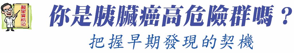 1.慢性胰臟炎:任何一種原因引起的慢性胰臟炎平均約增加10倍胰臟癌風險。 2.基因型慢性胰臟炎:因有特殊基因突變,胰臟會自我破壞導致上皮病變。這種人胰臟癌風險增加50~80倍,50歲以前有一半會得到胰臟癌、到70歲7成都有胰臟癌,甚至有可能需要預防性切除胰臟。 3.家族性癌症症候群:有些癌症與某些已知基因的變化有關,比如有的基因會長胰臟癌或乳癌、大腸癌等腺體癌,若家族有多人罹癌,有可能也會較容易出現胰臟癌,最高的風險可增3~132倍。這類家族可藉由檢測得知是否帶有這些基因。 4.家族性胰臟癌:家族三代以內,有2個或3個人罹患胰臟癌,此家族也是胰臟癌高危險群。例如曾有一家族,第一位胰臟癌患者5 0 歲確診時已是第四期胰臟癌,結果一年後陸續又有兩人不到5 0 歲有第四期胰臟癌,醫療團隊開始篩檢這個家族,發現其他沒症狀的家人,三分之一胰臟都不正常,有黏液性腫瘤或慢性胰臟炎。一般來說,家族中有1個人發生胰臟癌,其他家人約增加3~5倍風險;2個人有胰臟癌,約增加6倍風險;3個人以上發生胰臟癌,約增加3 2 倍風險。統計起來,臺灣每10個胰臟癌發病的患者,有一人就具有基因突變,目前針對這些高危險群,要以何種方式來篩檢,仍無定論,但根據各國篩檢計畫結果,目前傾向以非侵襲性檢查優先。