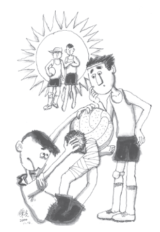 3、以墨西哥奧運的日本足球隊長為楷模,腳受傷無法出賽,不