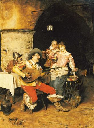 從畫當中我們也可以發現,演唱情歌所彈奏的樂器,是類