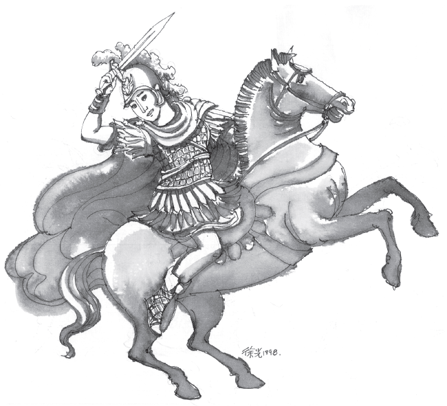 一次是亞歷山大駕馬車,宛如阿奇里斯(亞歷山大的決斷,P.46)。