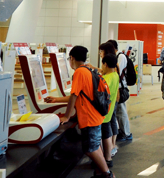 此外,為了便利讀者的使用,國資圖在每個樓層中都備有自助借書機,讓讀者不需等待就可以快速借閱想看的書籍。並可利用自助借書機查詢個人借閱紀錄,節省排隊等候時間 。