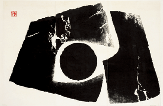 這是作者的現代版畫創作在台灣藝術史上極為重要代表作。1970年作品代表中華民國參加韓國舉辦的國際版畫雙年展,並榮膺最高首獎名譽。此國際展有30多國200多位藝術家參與,並經法、英、德、日四國評審選出。被評為「穿破黑暗的光明」,深具東方精神特色,沉凝洗鍊,潛藏無比的力量。作品由三大塊面的有機形體組成:一個大圓放置畫面正中央,兩塊形體圍著圓形,狀似相互環抱,像要結合又彷彿正在解離造成奇妙動勢。黑塊崩裂的白紋帶來活潑視覺的靈動,猶如混沌宇宙傳來雷鳴爆破的聲響。