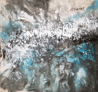 陳庭詩1976年遊歷美國回台後,把過往傳統水墨的創作樣式大膽嘗試翻新,在宣紙上潑墨潑彩讓它們自動暈染,很像江南帶風飄雨的淋漓景象,和版畫蒼茫天野的北國風貌大異其趣。這類作品約莫持續到1988年左右。