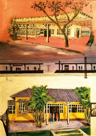保安車站的塗裝,從前是淡紫色,現則為全面漆白,與站前婆娑樹影成強烈對比,顯得更雅緻。