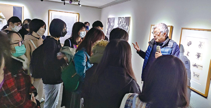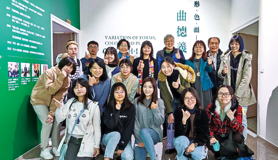| 彰師大美術系主任王麗雁(後排右5)帶領學生參觀「曲德義個展」 |