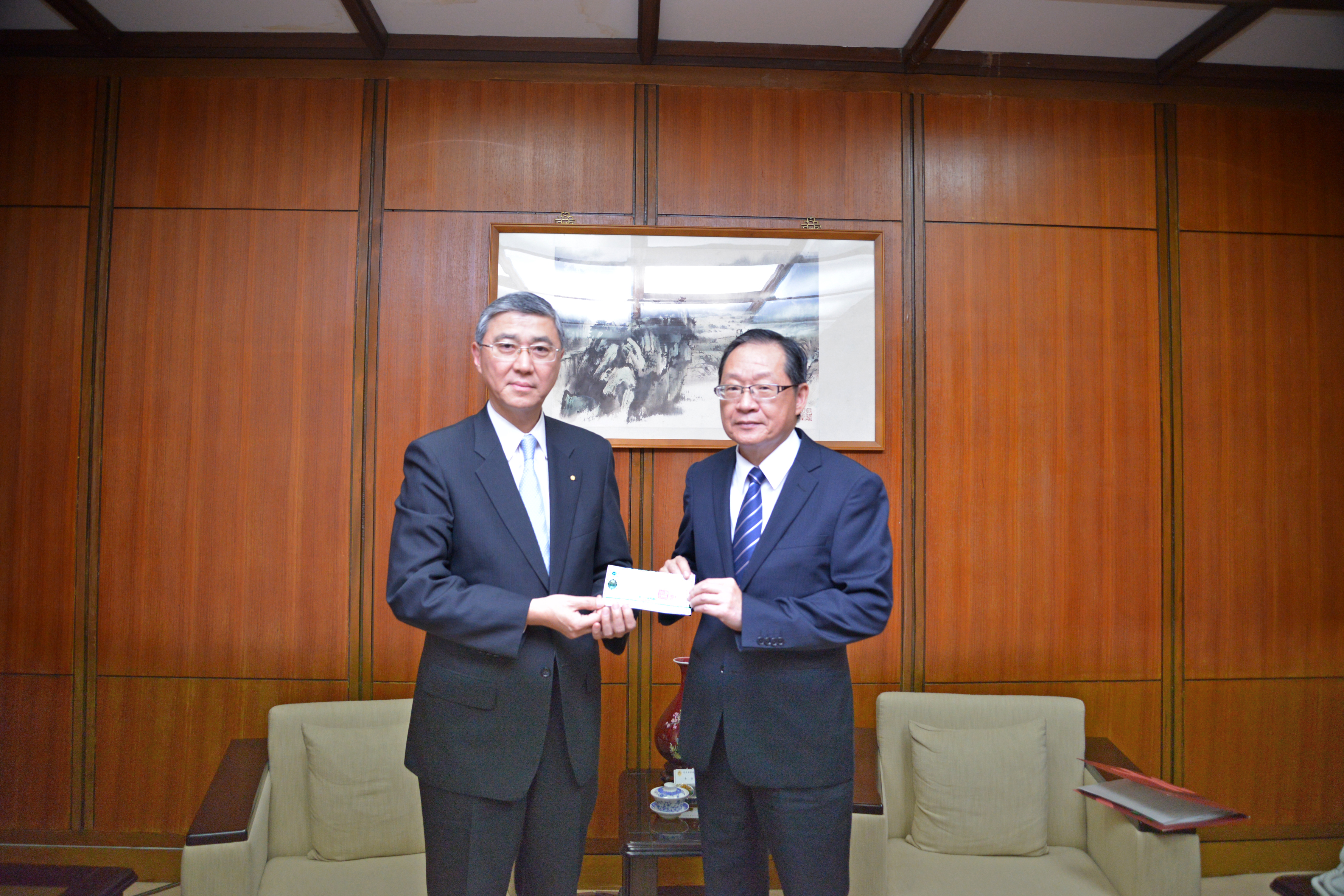 2016年4月14至16日日本九州熊本縣連續3天發生大強震。為表達對熊本震災的人道關懷,執行長林廷鋒代表創價前往外交部捐贈賑災金日幣1000萬元,外交部常務次長李澄然代表接受。 |
