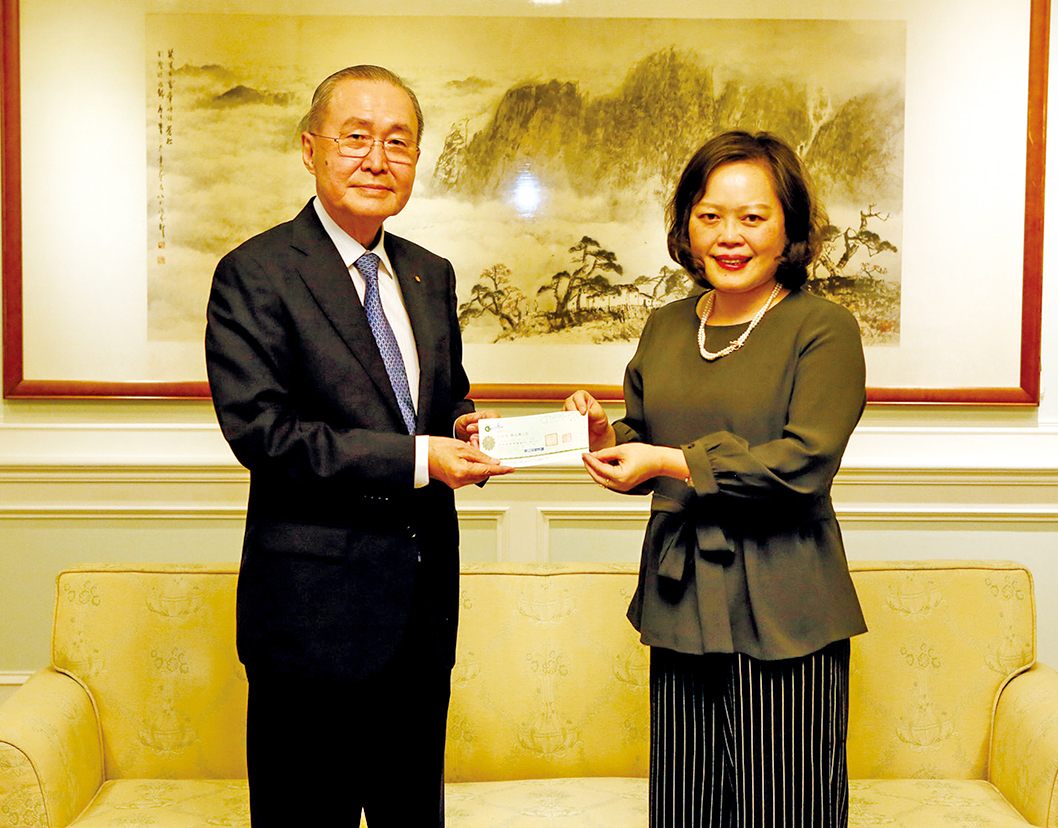 同年8月19日下午,外交部特於台北賓館舉辦「日本震災人道援助表揚茶會」。楊部長於會中頒贈「表揚狀」給創價,以感謝創價率先捐款的善行義舉!