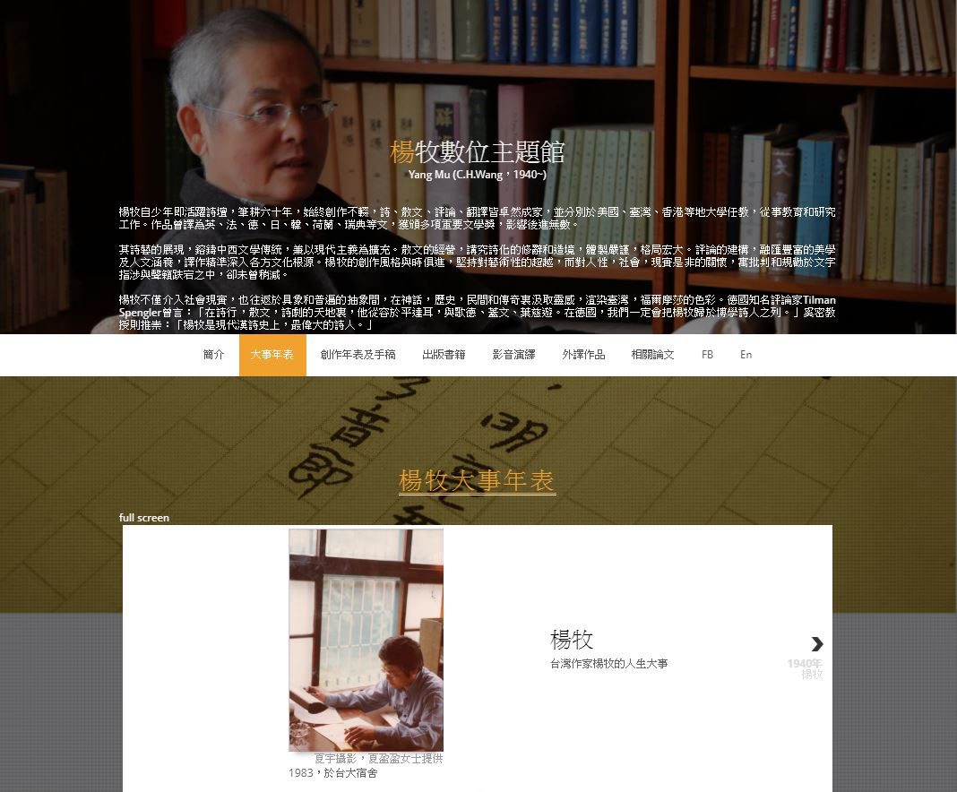 中興大學人社中心數位團隊策劃、建置的「楊牧數位主題館網站」。 |