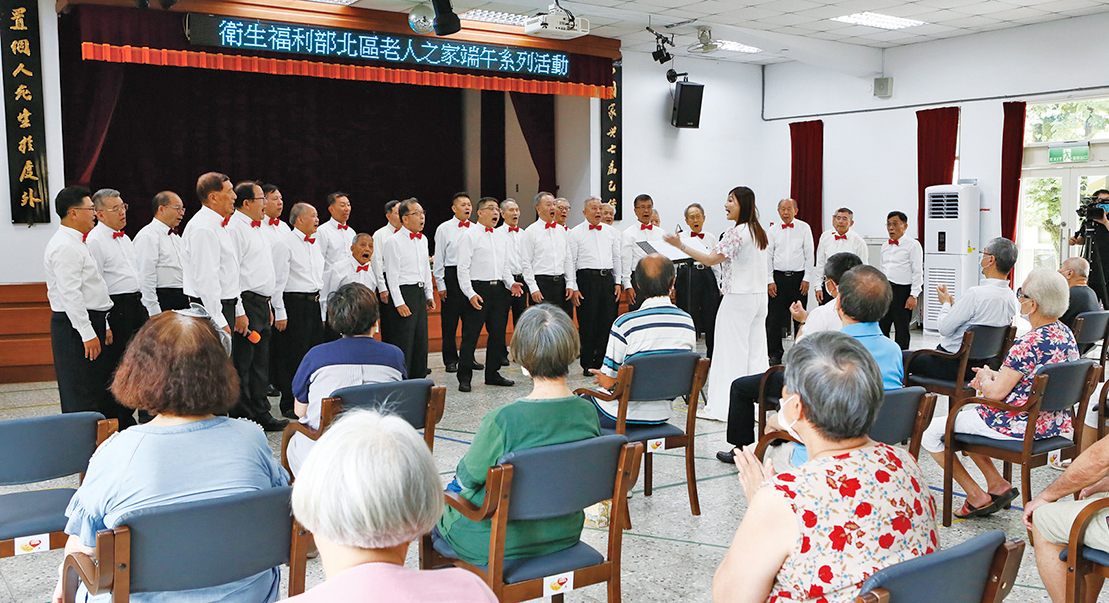 端午節前夕,白鳥合唱團前往「衛福部北區老人之家」舉行慈善義演,以歌聲為院內年長者獻上祝福。(2024.6.6)