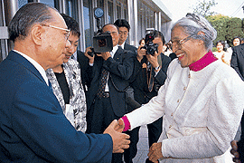 2000年,池田SGI會長與美國人權之母羅莎‧帕克斯(右)對談。