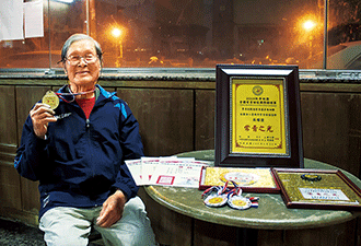 台南南區多寶會成員蘇耀讀9月24日、25日參加「2016秋季桃園全國常青田徑錦標賽」,勇奪鐵餅金牌、鉛球銀牌、標槍銅牌及「常青之光」等獎項。