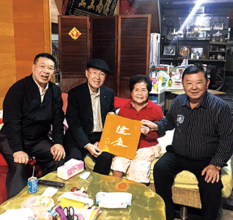 同日,林理事長前往高雄旗山家訪高齡8 0歲的多寶會陳吳妙紅女士。11月間,陳女士在外出運動時不慎跌傷、導致左大腿骨骨折,經過開刀治療後,已在家休養1個多月。當天,林理事長除了表達深切關懷之外,並致贈「健康」袱紗巾,鼓勵陳女士持續秉持強盛信心,開創健康長壽的人生。陳女士說:「看到林理事長非常欣喜,我每天都以題目認真祈求,一定會早日康復,盡快回到廣布行列!」