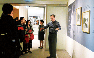 1月8日下午,林慶雲公子、任教於大葉大學的林擎天教授,帶領該校碩士班學生一行33人,蒞臨板橋藝文中心參觀林慶雲攝影展,並親自為學生進行導覽。