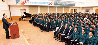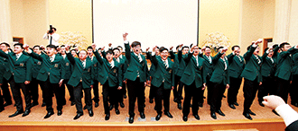 「人生、社會與廣宣流布都是如此。一切都是奮戰。」當天,林理事長特地到場勉勵大家要秉持「以一當千」的精神,立下堅定的決心要在自己的工作崗位、地區上奮勇地向前奔馳。當天,並親自頒發創價班最高榮譽徽章給74位「信行學俱優」的班員,獲獎者的勇者之姿令人敬佩。最後,全員胸懷與師同心、守護創價、貫徹幕後奮鬥的決心,高唱〈威風堂堂〉、異體同心地朝向「青年擴大之年」,勇躍出發。
