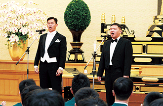 這群貫徹幕後奮戰、峻立在寒天酷暑中的創價班,是全台各地藝文中心開幕剪綵、藝文講座、教育講座、各類研修會等活動都得以「無事故」順利舉行的大功臣。這群廣布英雄透過平日的勤務訓練與挑戰,不斷地進行自我人性變革,並在職場上創造勝利體驗。此次,林和毅、林俊充兩人在會中發表他們透過創價班的使命鍛鍊,創造出工作與廣布雙贏的勝利體驗,獲得全場熱烈喝采!