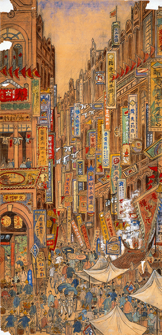 郭雪湖1908年生於台北大稻埕,早年自修繪畫,曾受陳英聲、蔡雪溪及鄉原古統的繪畫啟蒙,1927年以〈松壑飛泉〉入選首屆「台灣美術展覽會」,與陳進、林玉山並譽為「台展三少年」。郭雪湖作品構圖縝密、風格多元,不僅呈現地方色彩及人文關懷,更鮮活描繪台灣的風土景致、民眾生活,名聞遐邇的〈圓山附近〉、〈南街殷賑〉等畫作,已成為台灣形象的代表作。