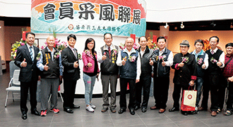 苗栗縣三義木雕協會「會員采風聯展」,2月4日在三義木雕博物館舉行開幕茶會,創價應該協會理事長、社會部成員蔡獻堂(左3)之邀,由社會部桃竹苗部長蔡森源(左1)代表前往祝賀,苗栗縣長徐耀昌(左6)特別向創價代表致意,對於創價推動文化藝術交流的行動,表示肯定。