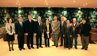 日本演歌巨星吉幾三(右5)一行,在林釗理事長(左4)陪同下,前往文化部拜會,受到鄭麗君部長(右6)熱烈歡迎。