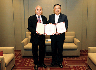 致理科大尚世昌校長(左)與創價簽署「合作意向書」。