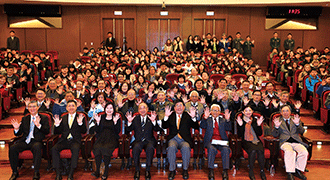 為祝賀中國文化大學55週年校慶,日本創價大學理事長田代康則(右圖前排左4)、國際部部長小山內優(前排左2)、日本創價學會國際總局國際涉外部長竹井雅弘等人組成的訪問團,3月1日,在執行長林廷鋒陪同下,前往文大參加緬懷該校創辦人張其昀博士之追思獻花儀式暨校慶慶祝大會,並代表創大創辦人池田SGI會長捎去祝賀之意,受到該校董事張海燕(前排右2)、校長李天任(前排右4)熱烈歡迎。