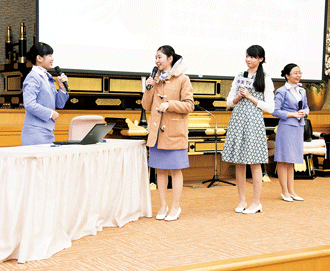 會中,台北中區陳均芳發表體驗時談到,透過參加芙蓉組的鍛鍊與成長,她不但成功創業,並懷抱勇氣引導家人入信,創造了工作、家庭及廣布使命上的勝利實證,鼓舞人心。