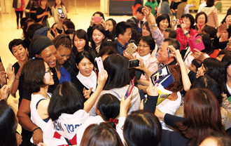 散場時,團員在大廳歡送觀眾,合影留念。(4.8)