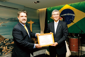 為感謝民主音樂協會創辦人池田SGI會長致力推進世界各國文化交流的貢獻,此次更引進「Sururu na Roda」樂團來台公演,巴西駐台商務辦事處主任馮邦達特地在會中頒贈「感謝狀」給池田先生,執行長林廷鋒代表接受。