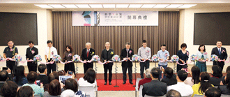 左起:黃承嘉副理事長、鳳鳴國中校長紀淑珍、中原大學設計學院院長陳其澎、中壢區公所區長林香美、藝術家謝孝德教授、創作者李茂宗教授、藝術家戴武光教授、中華民國陶藝協會理事長李河逸、亞東技術學院校長黃茂全、大園國際高中校長鍾鼎國、祥安國小校長姜智慧。 |