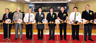 「觀想人性之美 張蒼松對影成三人」展4月15日下午,在台中藝文中心舉行開幕典禮,此次展覽分三大主題,分別是「望穿眺望-向尼埃普斯致敬」、「地動情長-九二一家族記」、「幽禁與破繭-一個世界一樣情」,一共展出121件作品與多件手稿。