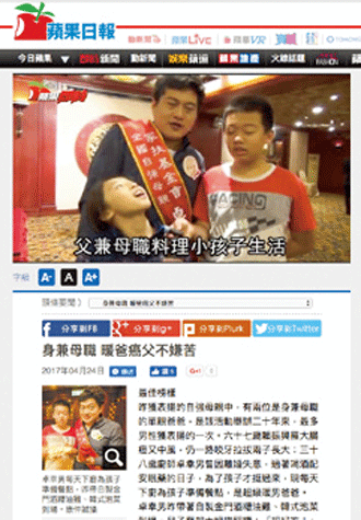 卓幸男父兼母職獲頒家扶基金會「自強母親」的感人事蹟,獲得自由時報、蘋果日報等媒體報導。